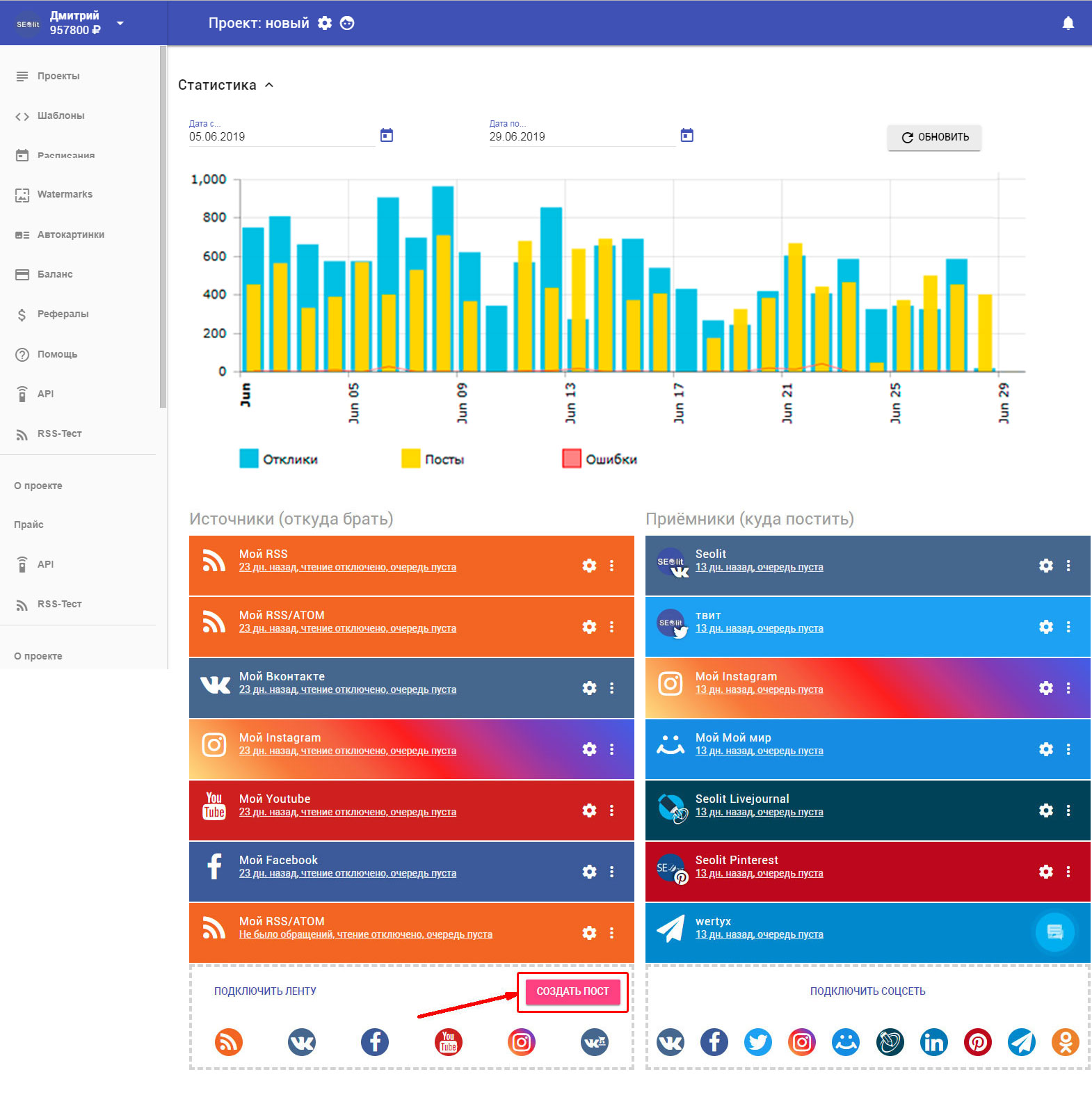 Нажмите на кнопку «Создать пост» в нижней части панели управления вашего проекта.