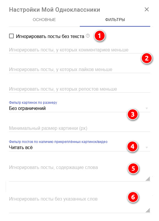 1. Этот чекбокс позволит вам игнорировать публикации, в которых нет текста.