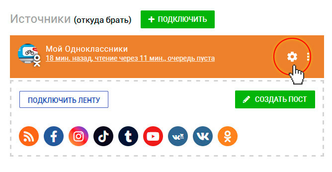 10. Если вдруг ваши публикации перестали считываться, что можно увидеть проанализировав очередь публикаций, то эта кнопка обновит доступ к вашей ленте для SEOlit. Обычно такое случается, когда происходит смена пароля в аккаунте, отключается приложение SEOlit в аккаунте, либо лента/проект с этой лентой долгое время был отключен. Нажимая эту кнопку, вы можете самостоятельно решить данную проблему.