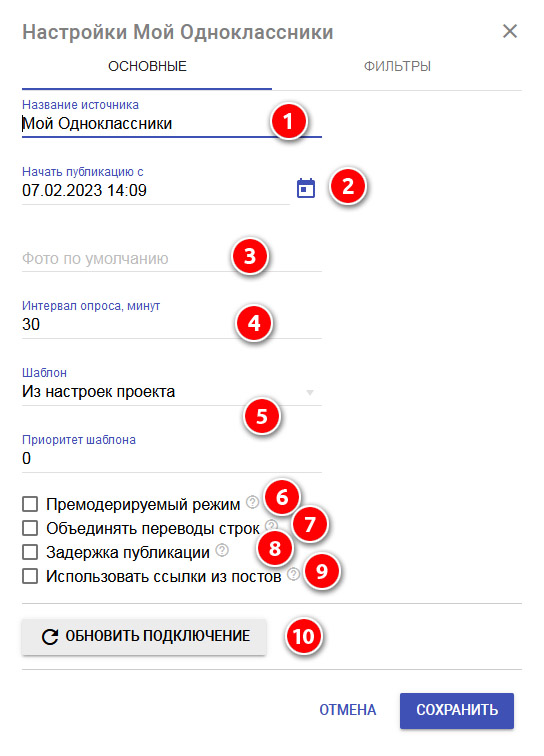 4. В этом поле вы задаёте частоту опроса ленты. Чем меньше частота, тем быстрее будут расходиться новые публикации, добавленные в ленту.