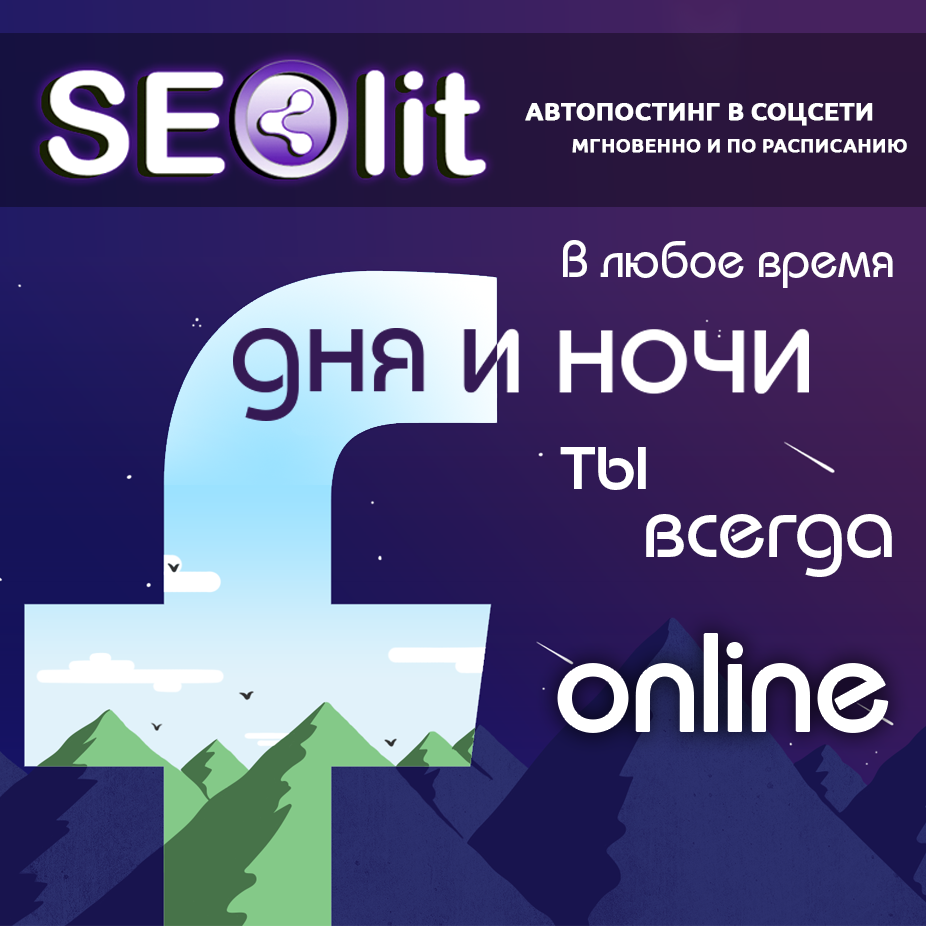 Успех продвижения в Facebook зависит от того, насколько часто вы обновляете контент группы или страницы. Не позволяйте вашим подписчикам скучать, привлекайте их внимание, пробуждайте в них интерес к вашей работе. Например, вы можете легко и быстро сделать рекламу вашему официальному сайту, настроив из него автопостинг в Facebook. Это легко сделать с помощью онлайн-сервиса SEOlit.
