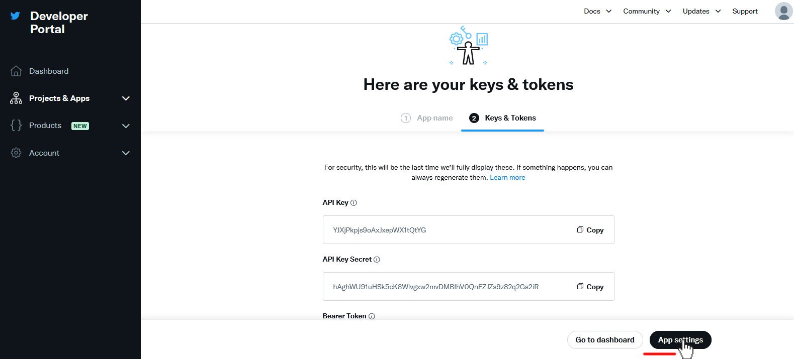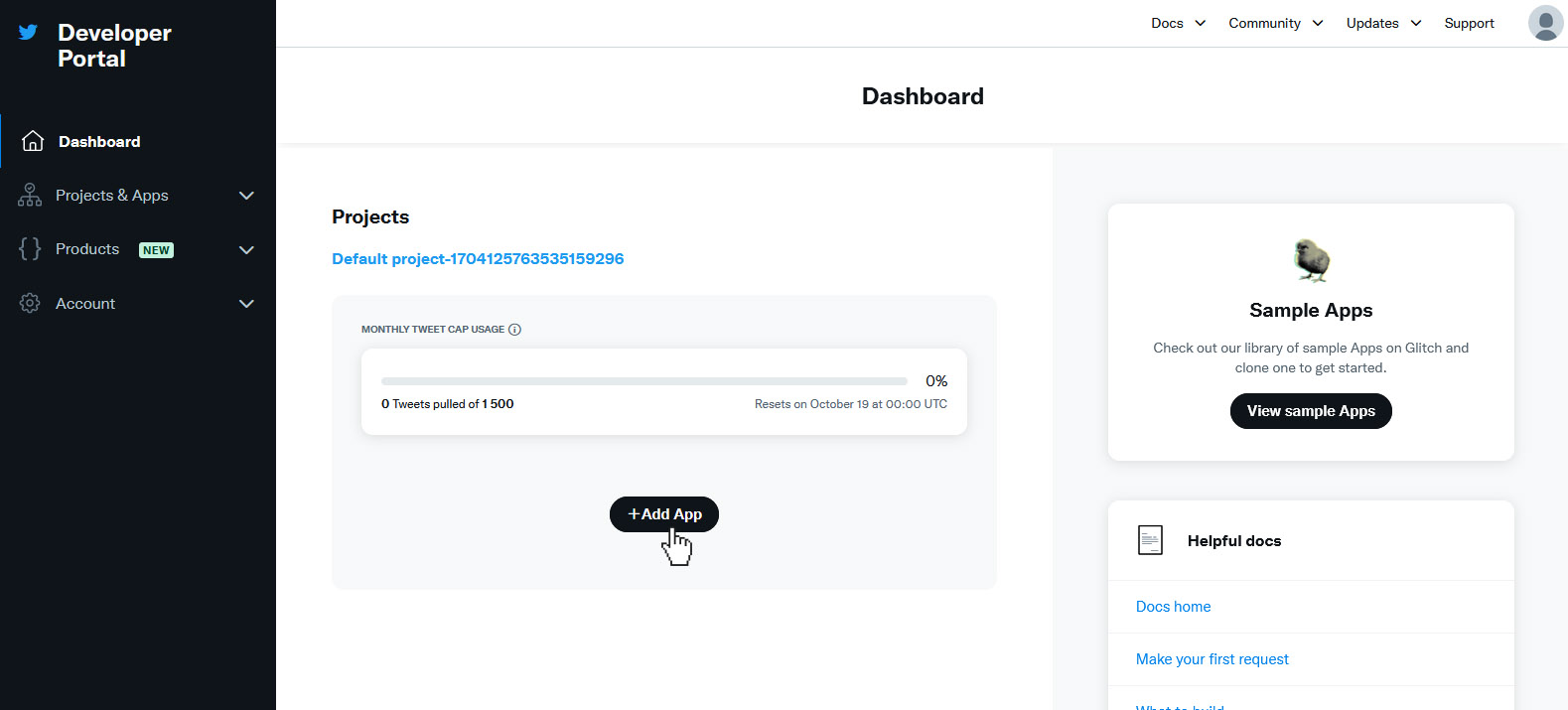 Зарегистрируйтесь по ссылке: https://developer.twitter.com/en/portal/product и создайте там своё приложение, с бесплатным тарифом.