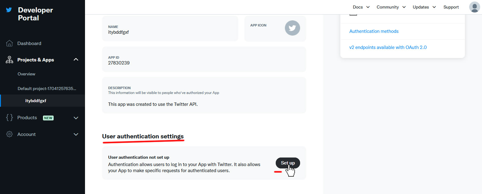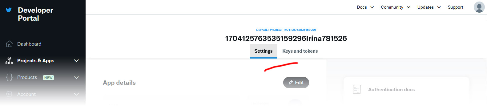 3. Вернитесь в ваш проект и снова начните процесс подключения Твиттера. Теперь в поле выбора приложения в увидите название своего приложения.