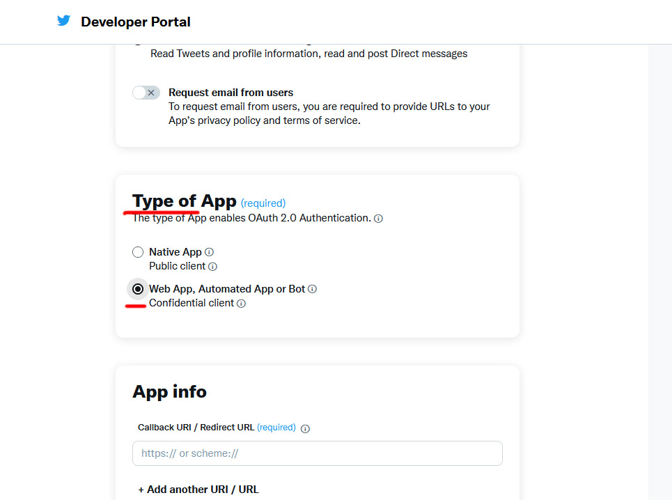 В блоке «Type of App» выберите «Web App, Automated App or Bot»