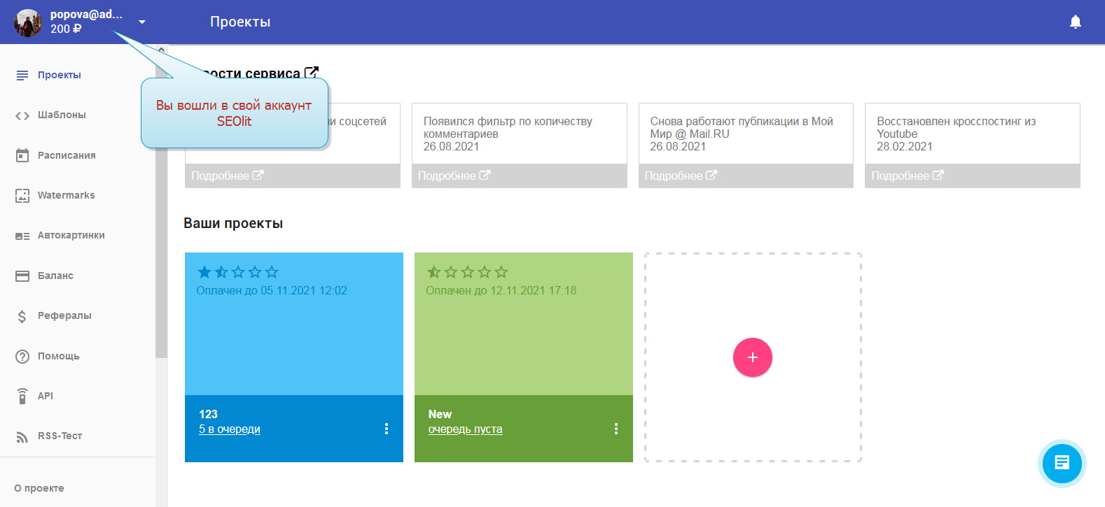 1. Вы вошли в свой профиль на Сеолите.