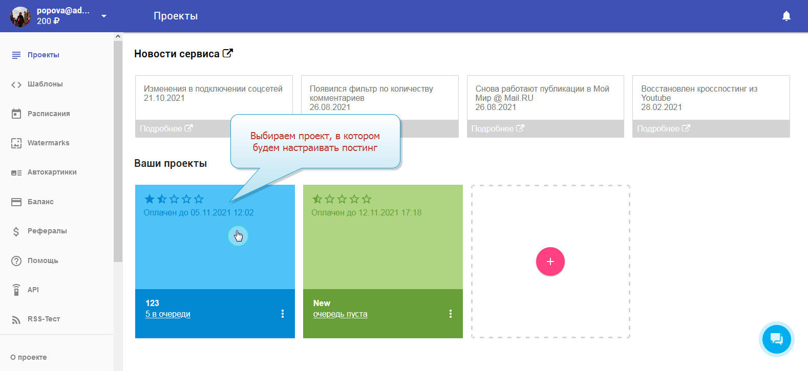 2. Выбираем проект, в котором будем работать.