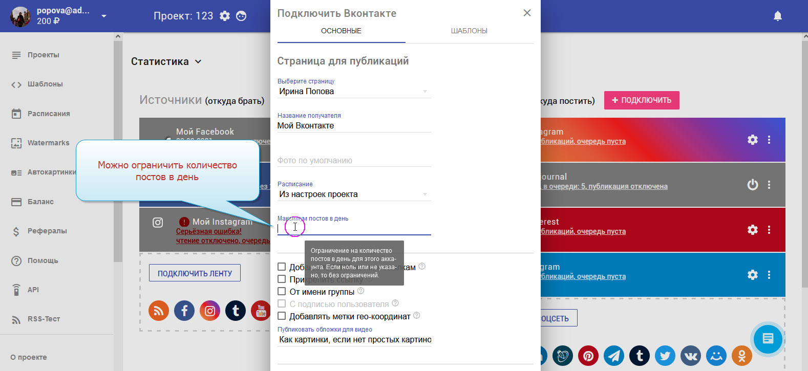 8. Можно ограничить количество постов в сутки.