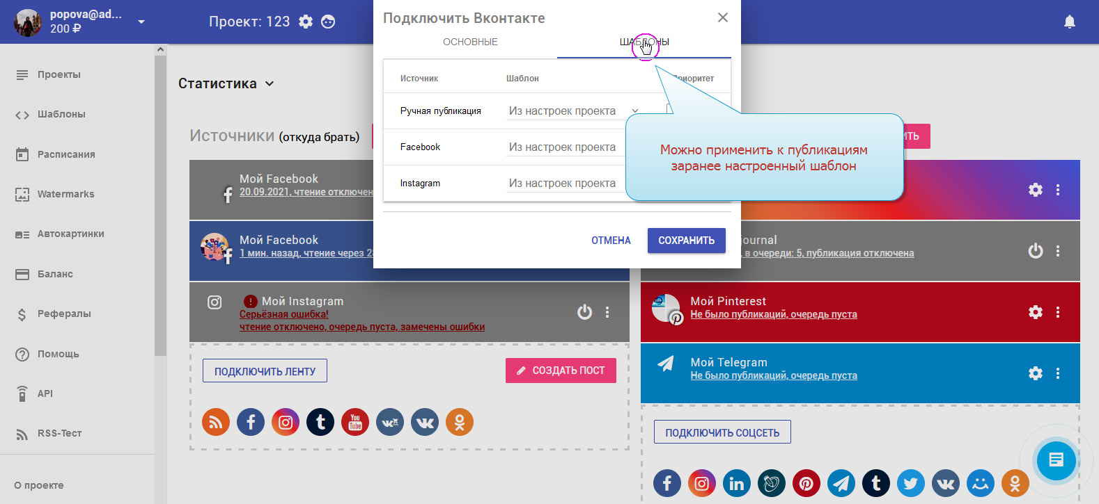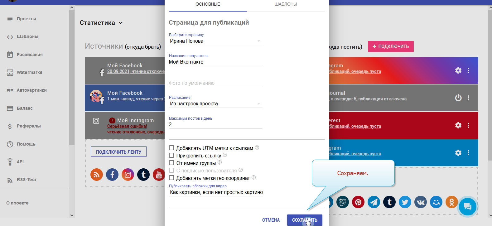 11. Есть возможность делать публикации по заранее настроенному шаблону. Подробнее об этом в инструкции по созданию шаблонов.