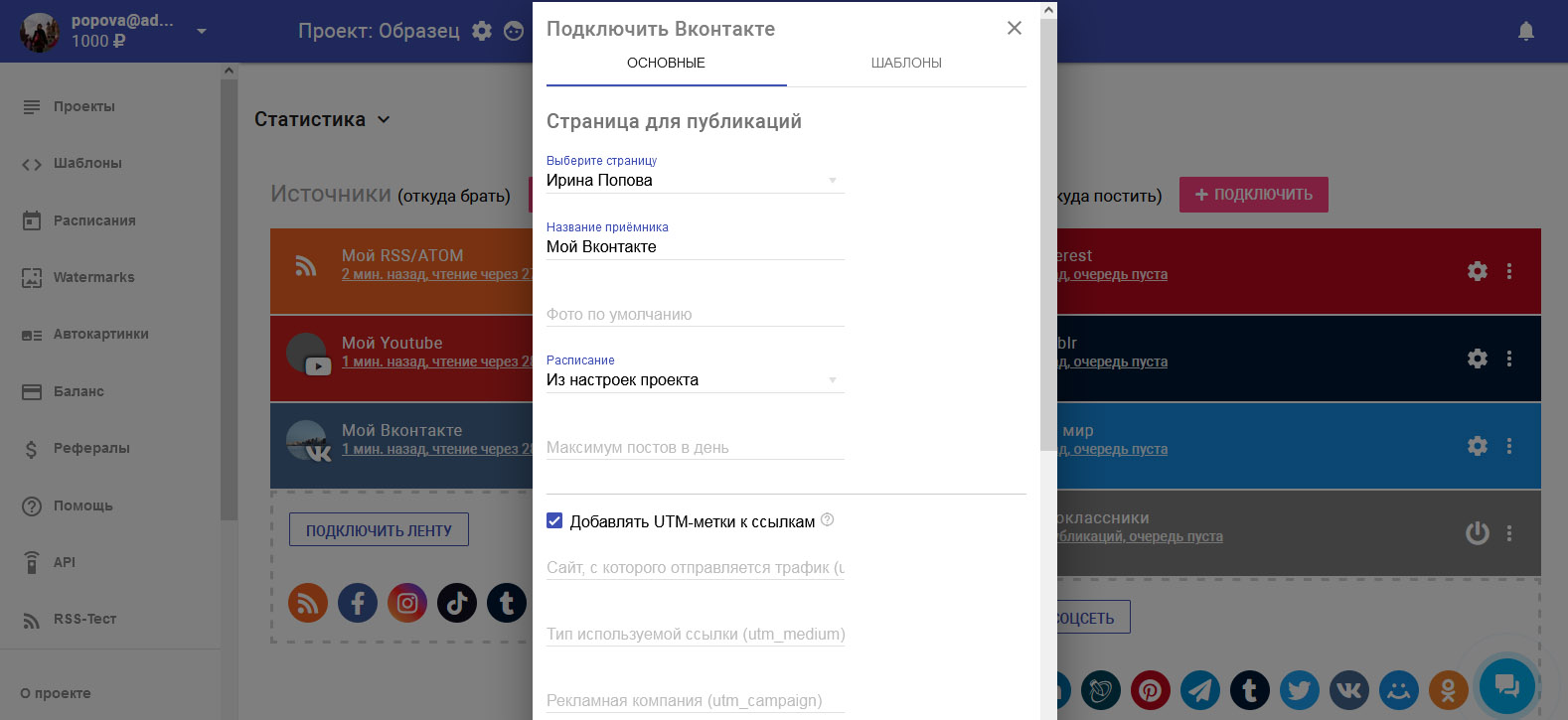 Подключение аккаунта Вконтакте