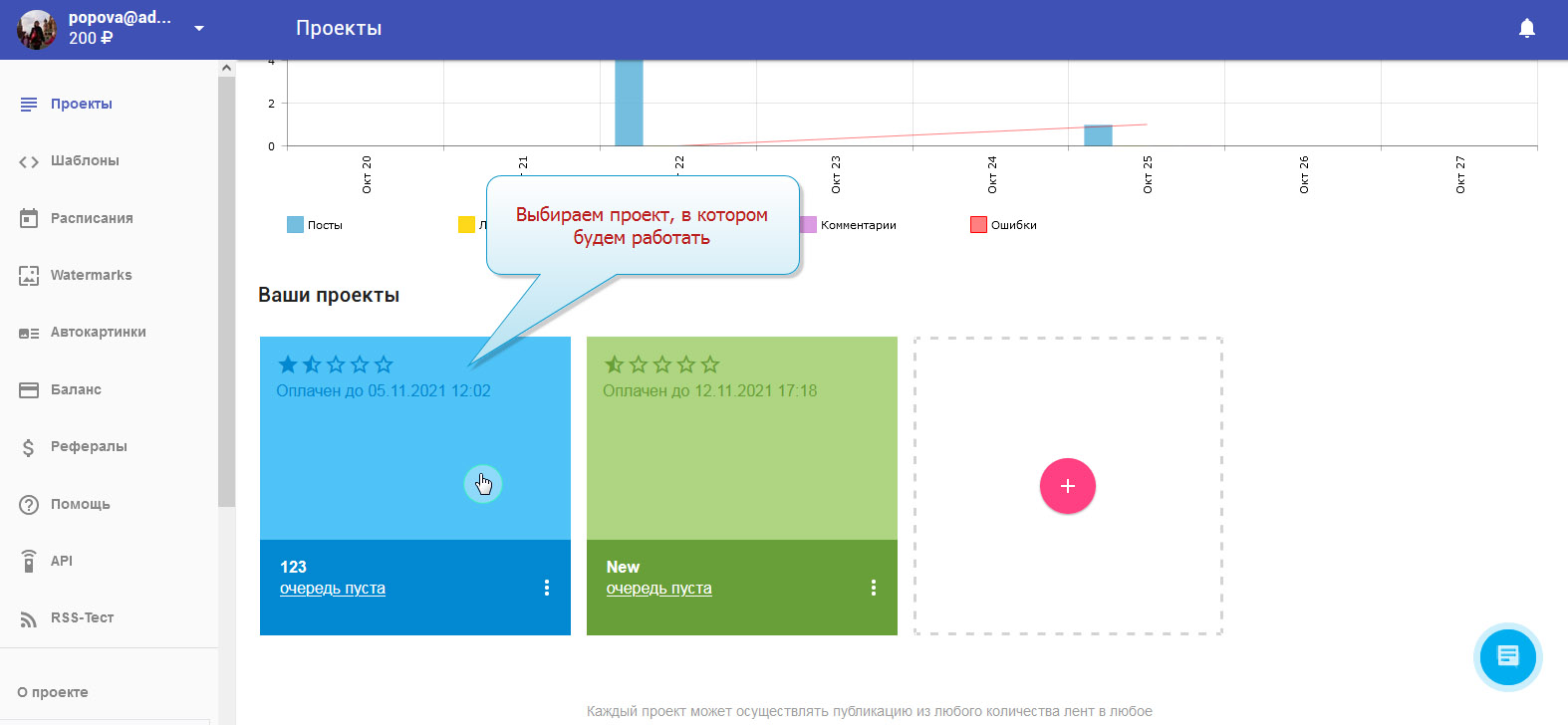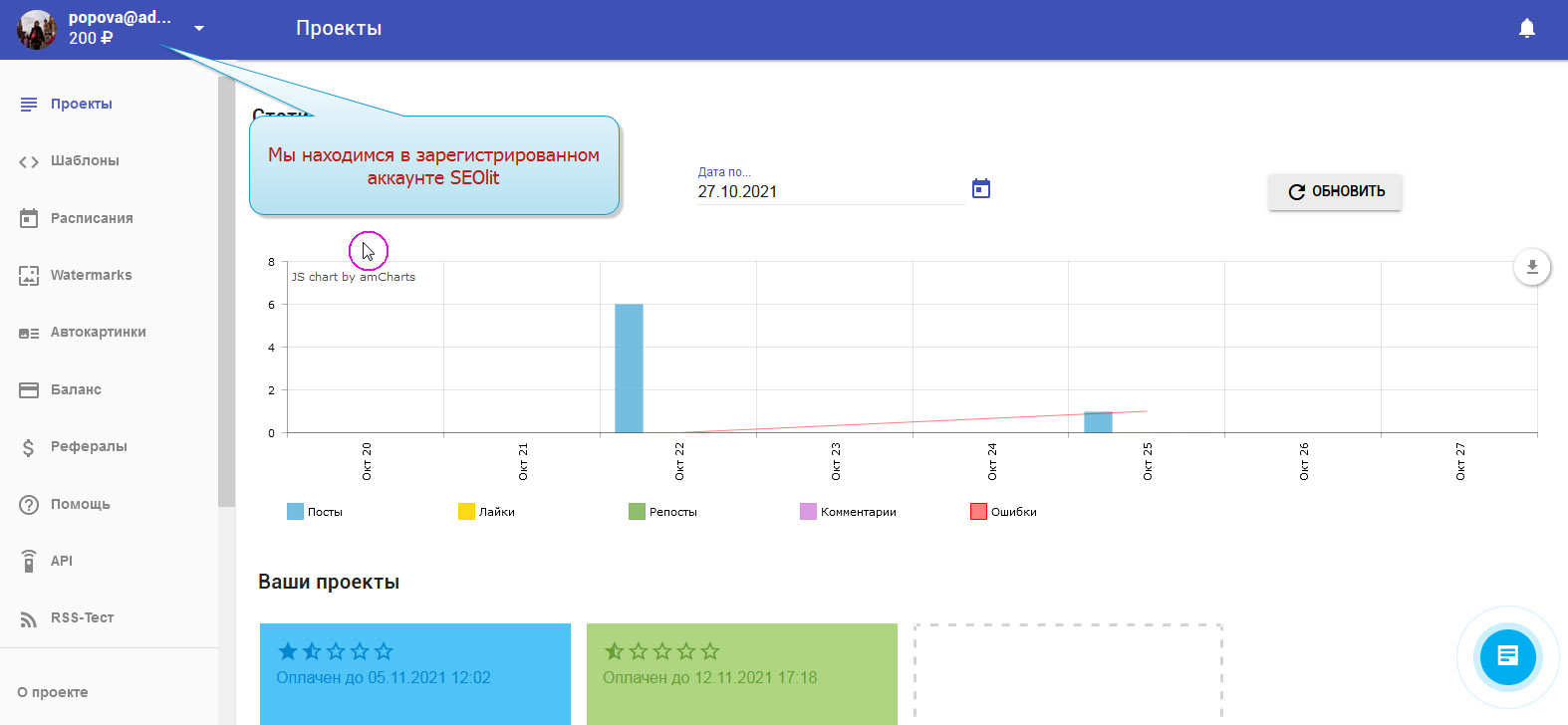 1. Вы вошли в свой профиль в Сеолите и находитесь на стадии выбора проекта.