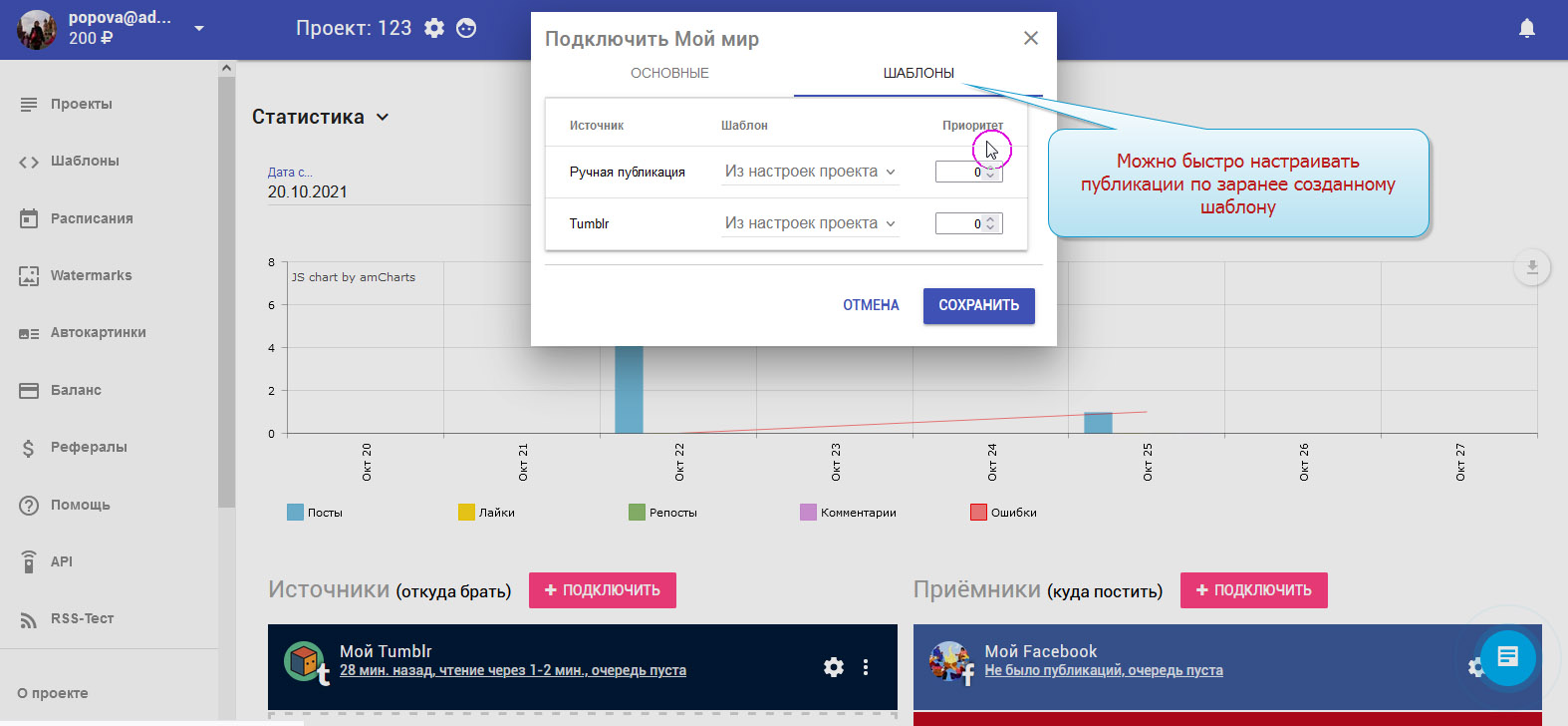 11. Чтобы сделать настройку публикации ещё быстрее и удобнее - пользуйтесь шаблонами. Как создать шаблон смотрите в инструкции по созданию шаблонов.