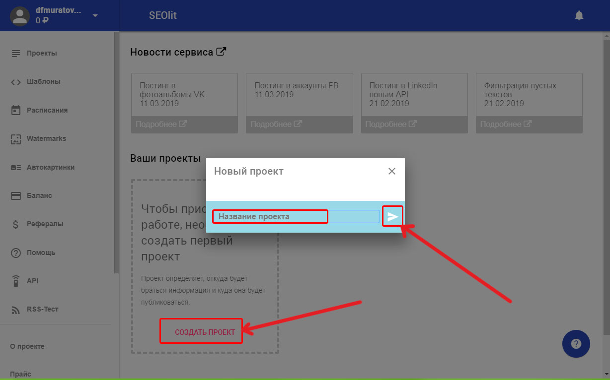 Создать ПЕРВЫЙ проект сервис SEOlit позволяет бесплатно!
