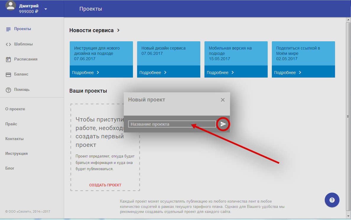 2. Заполните поле "Название проекта" и нажмите на самолётик справа от названия.