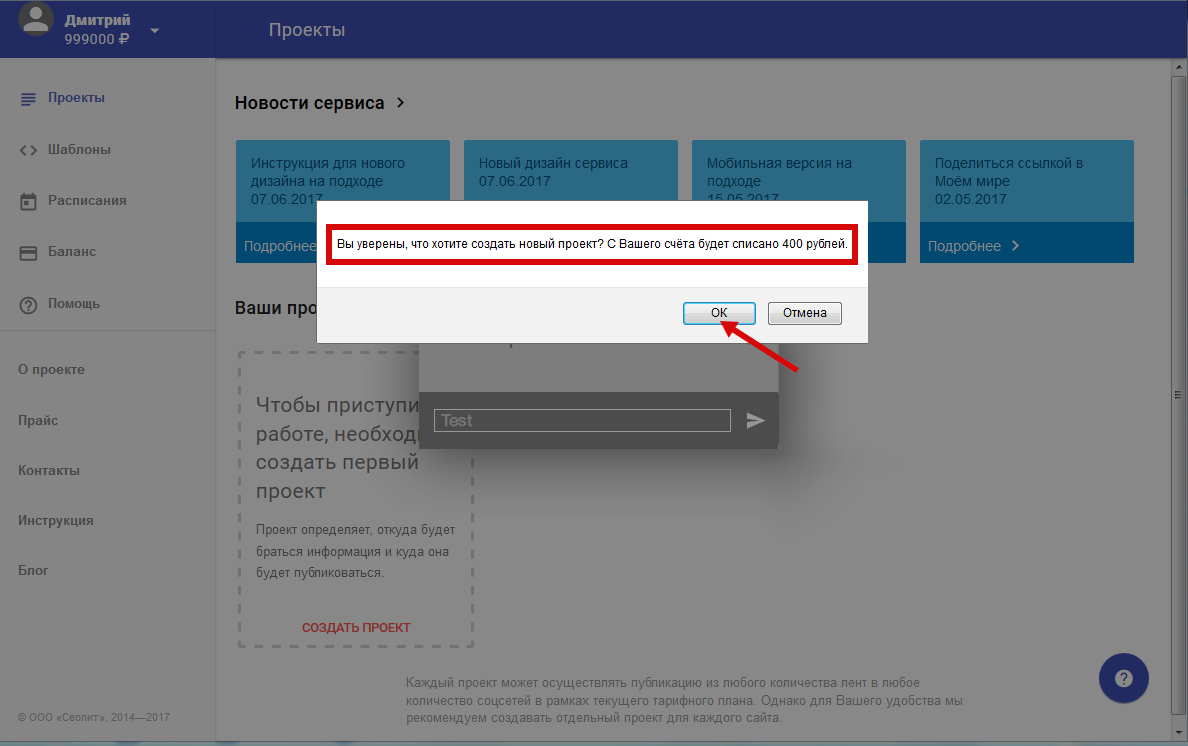 3. Система монетизации проекта выдаст окошко о подтверждении списания средств со счёта внутри Вашего зарегистрированного профиля. Для подтверждения нажмите "ОК"