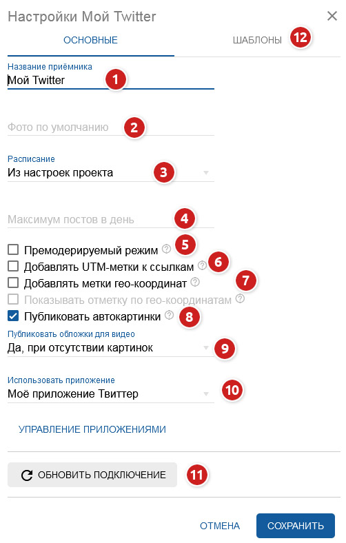 Настройки публикации в Twitter