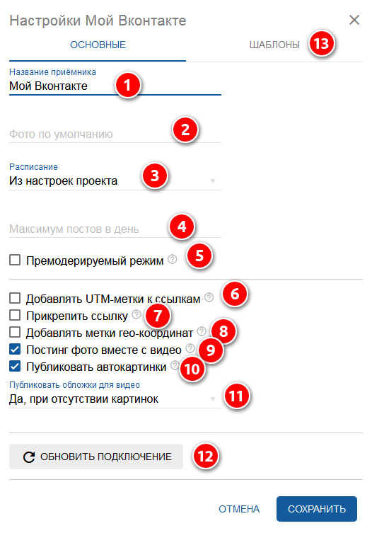 10. По умолчанию при отсутствии фото/видео будут публиковаться автокартинки, настроенные в шаблоне.