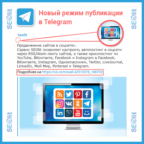 Сегодня изменился режим публикации изображений в Телеграм в режиме автовыбора формата постинга: теперь в случае, если сопутствующий текст превышает 200 символов и изображение размещается по ссылке, точка с ссылкой теперь размещается вначале текста на отдельной строке. Это не должно портить визуальное восприятие поста, и при этом должно обеспечивать правильный сниппет.
