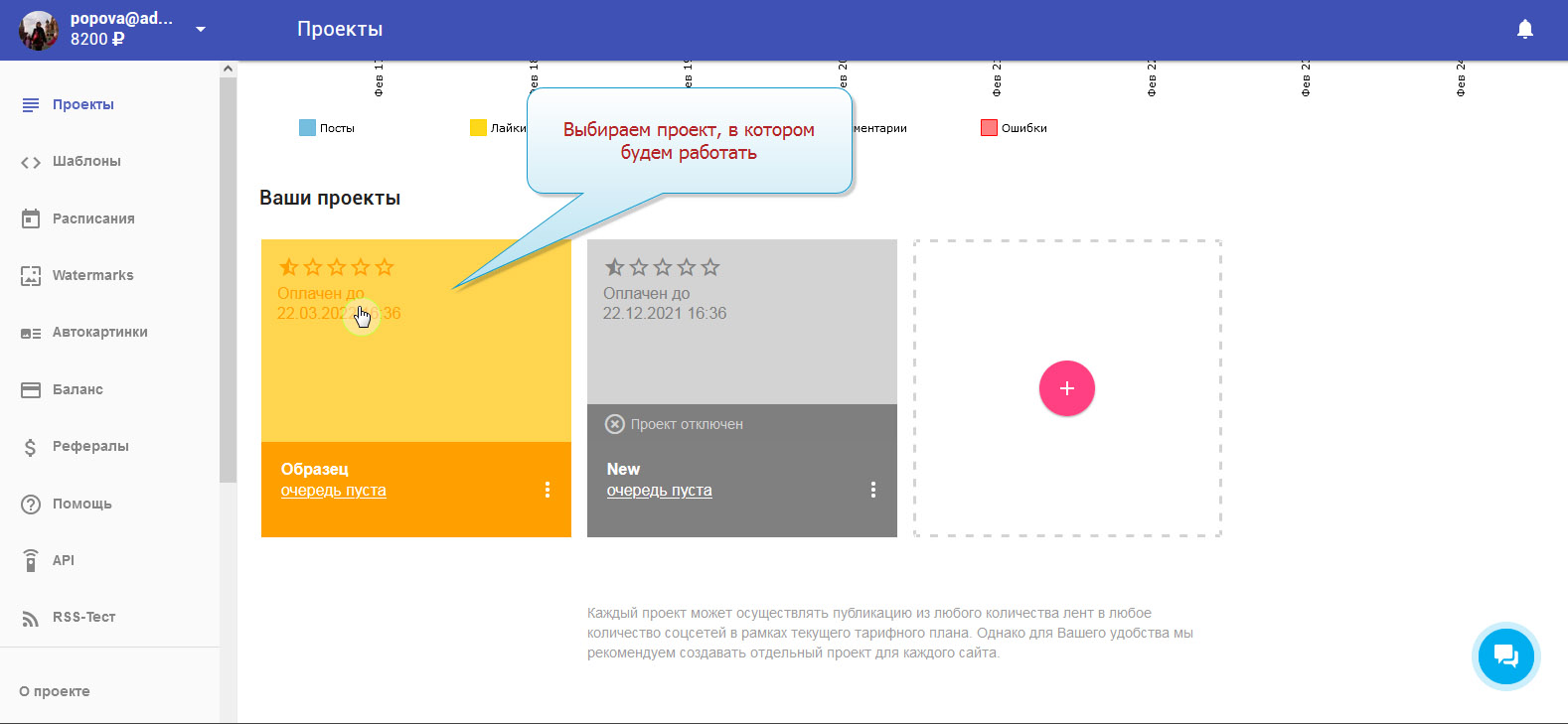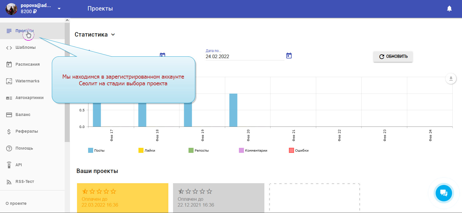 1. Вы вошли в свой аккаунт на Сеолите и находитесь на стадии выбора проекта.