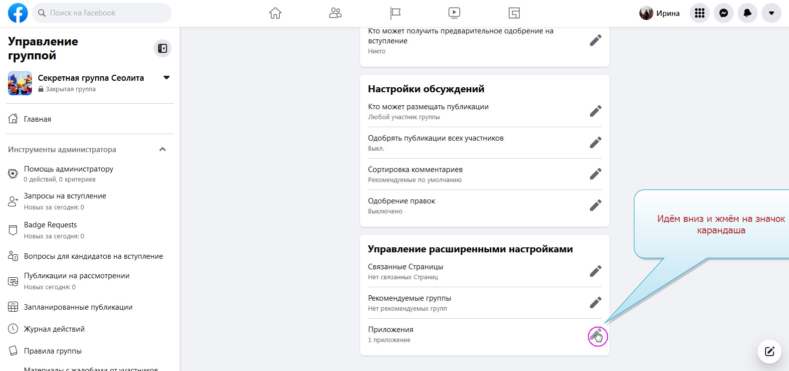 9. Крутим настройки вниз и нажимаем на значок редактирования приложений.