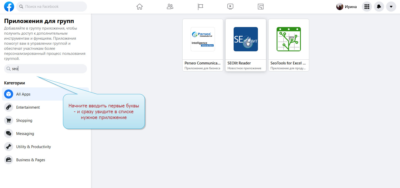 11. Начинаем вбивать название "SEOlit Reader", приложение появляется, видим его и заходим туда.
